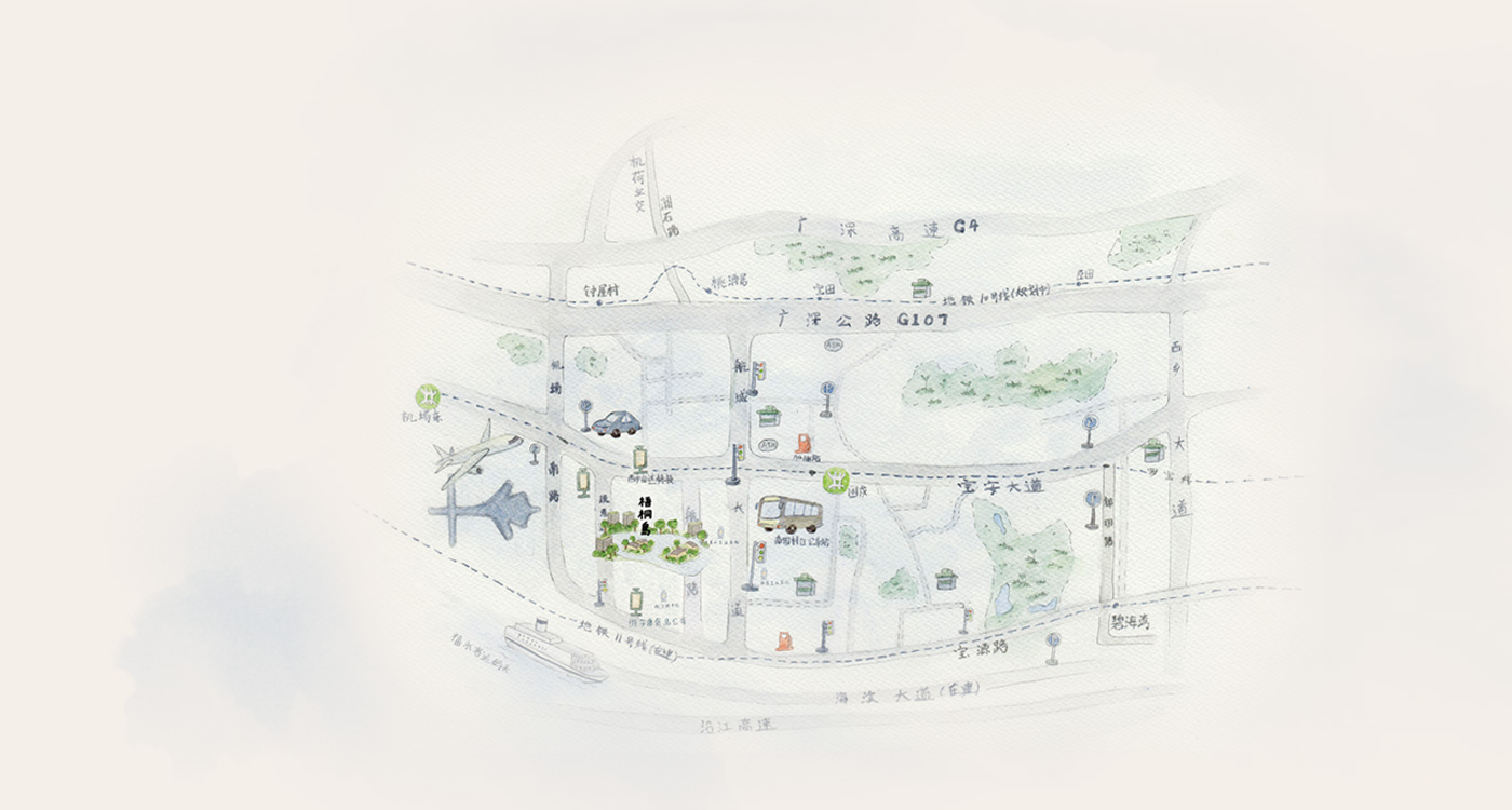 路线A:>> 北环大道——107国道——洲石路立交——107国道南山方向——航城大道——顺昌路与航空路交汇处。 路线B:>> 深南大道西行方向——宝安大道——航城大道——顺昌路与航空路交汇处。